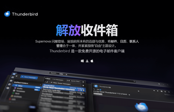 - 开源免费: Thunderbird 是一款自由软件,用户可以免费使用、拷贝、分发和修改。